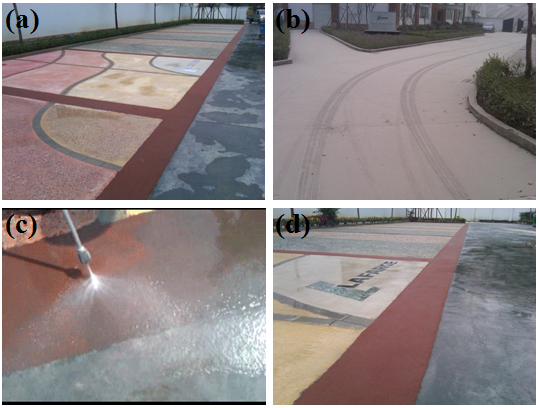 砂基滤水路面由于其表面较致密,绝大部分泥尘无法进入其内部孔隙。泥尘会板结于表面之上,可以利用高压水枪冲洗产生的反涌作用能方便的清洗。