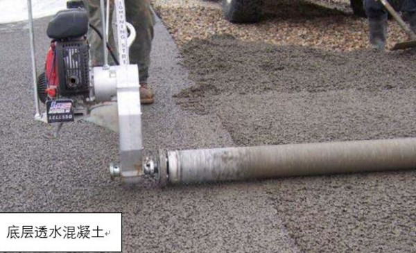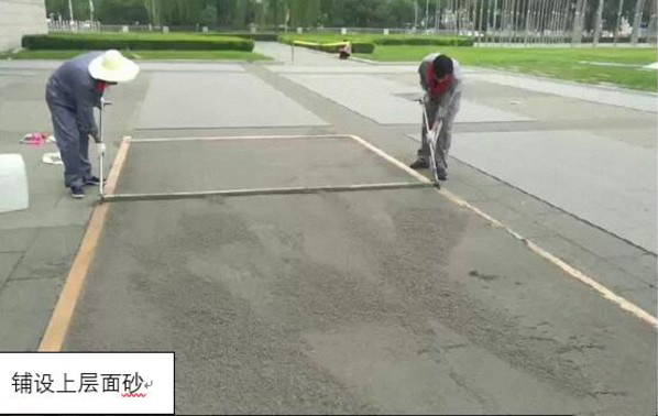 施工工艺流程:地基处理→铺设透水混凝土底层→铺设硅砂透水面层→养护、清理。