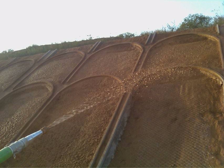3)植生混凝土施工必须进行使用专业厂家生产的植生砼专用增强剂,以确保孔隙率、强度同时有效降低碱性达到植生标准。