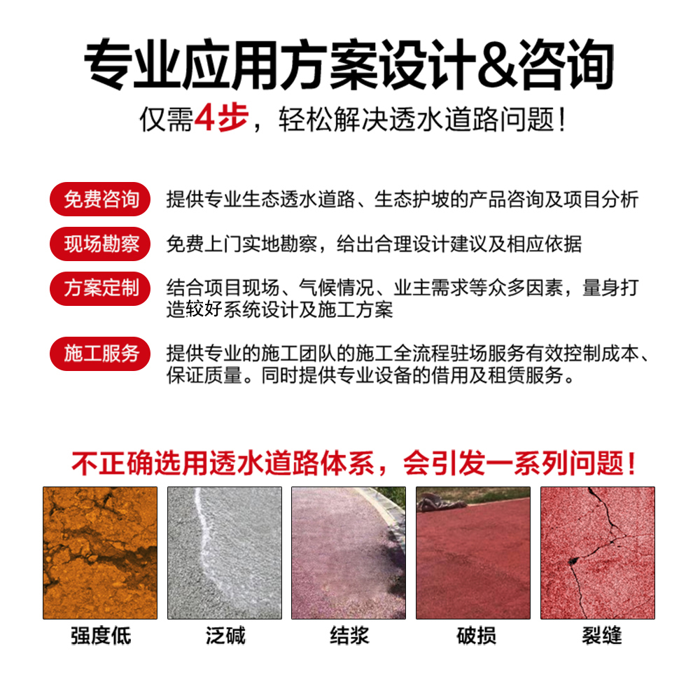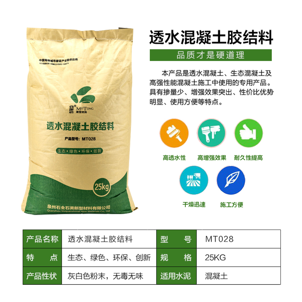 透水混凝土胶结料/增强剂:大幅提高透水混凝土强度,改善施工和易性,提高骨料粘结力。