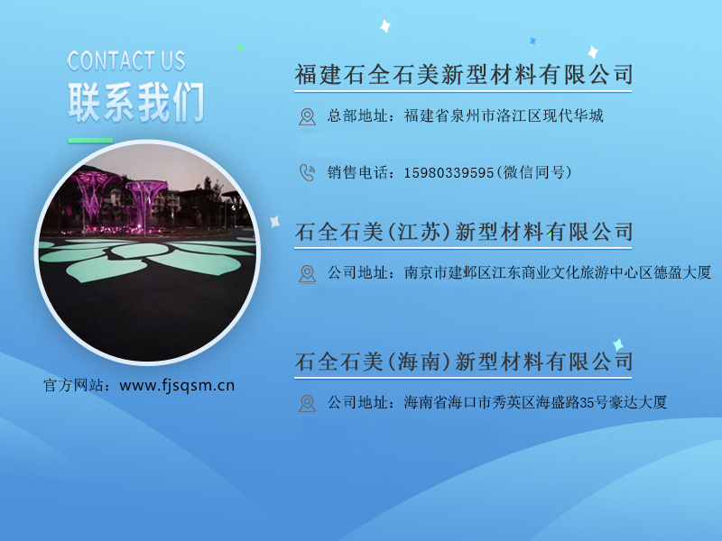 石全石美新型材料有限公司是一家集科研、生产、开发、施工为一体的"海绵城市"透水路面综合型企业,主要以彩色道路铺装材料的研究、生产和专业工程承包为主导,致力打造彩色道路一站式服务平台,为业主提供生态工程技术方面的各种解决方案。